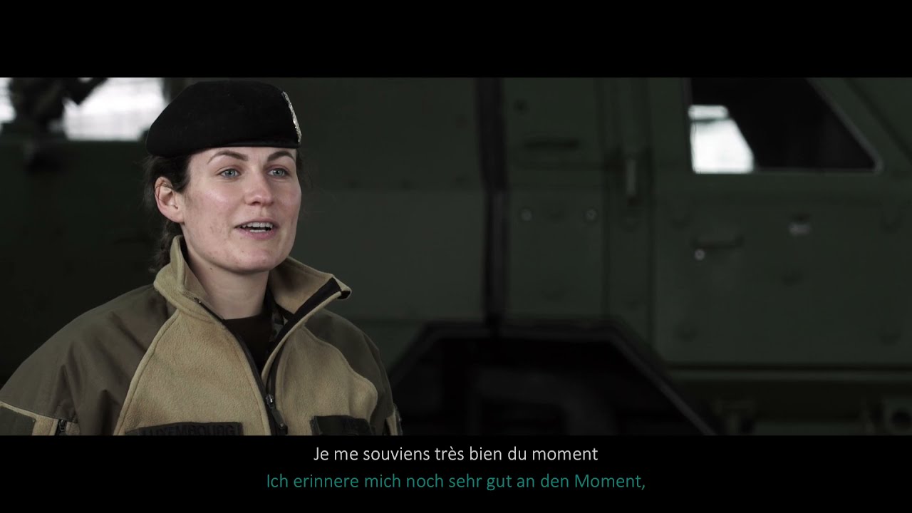 Anne KIESCH: Ech ka mech nach ganz genee drun erënneren, wéi ech mengen Eltere gesot hunn, bei d’Arméi ze goen, dat war déi bescht Entscheedung déi ech a mengem Liewen geholl hunn. An ech soen et nach eng Kéier: ech hunn et ni bereit, mech hei ze engagéieren.